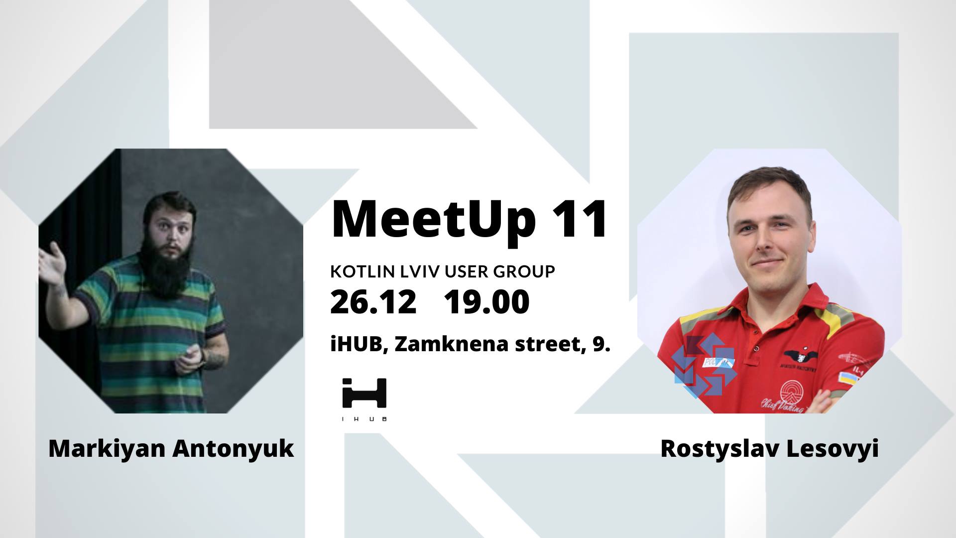 KLUG MeetUp №11 Hi Kotliners! Unexpectedly, @Kotlin Lviv User Group – KLUG is preparing our latest meetUp in this year. We look forward to seeing everyone who is related to Kotlin language on December 26 at IHUB Lviv coworking on Zamknena street, 9. Markiyan Antonyuk with “Android testing with Kotlin” Markiyan is an android developer at Ring Ukraine. He will talk about: Most of the people think that writing Unit/UI tests takes a lot of time and is really boring.Let’s make it quick & fun with Kotlin. Rostyslav Lesovyi “In-depth analysis of Kotlin Flows”. Lead Software Engineer at GlobalLogic Ukraine. About what will be the talk: They finally arrived – Kotlin Flows! Are they really great or just good enough? Does RxJava finally have a true competitor? Will they be the savior we all have been waiting for? Are you going to visit us for the first time? Registration here If you have already visited our events, registration for you is not obligatory, just confirm request on your calendar! VIDEO